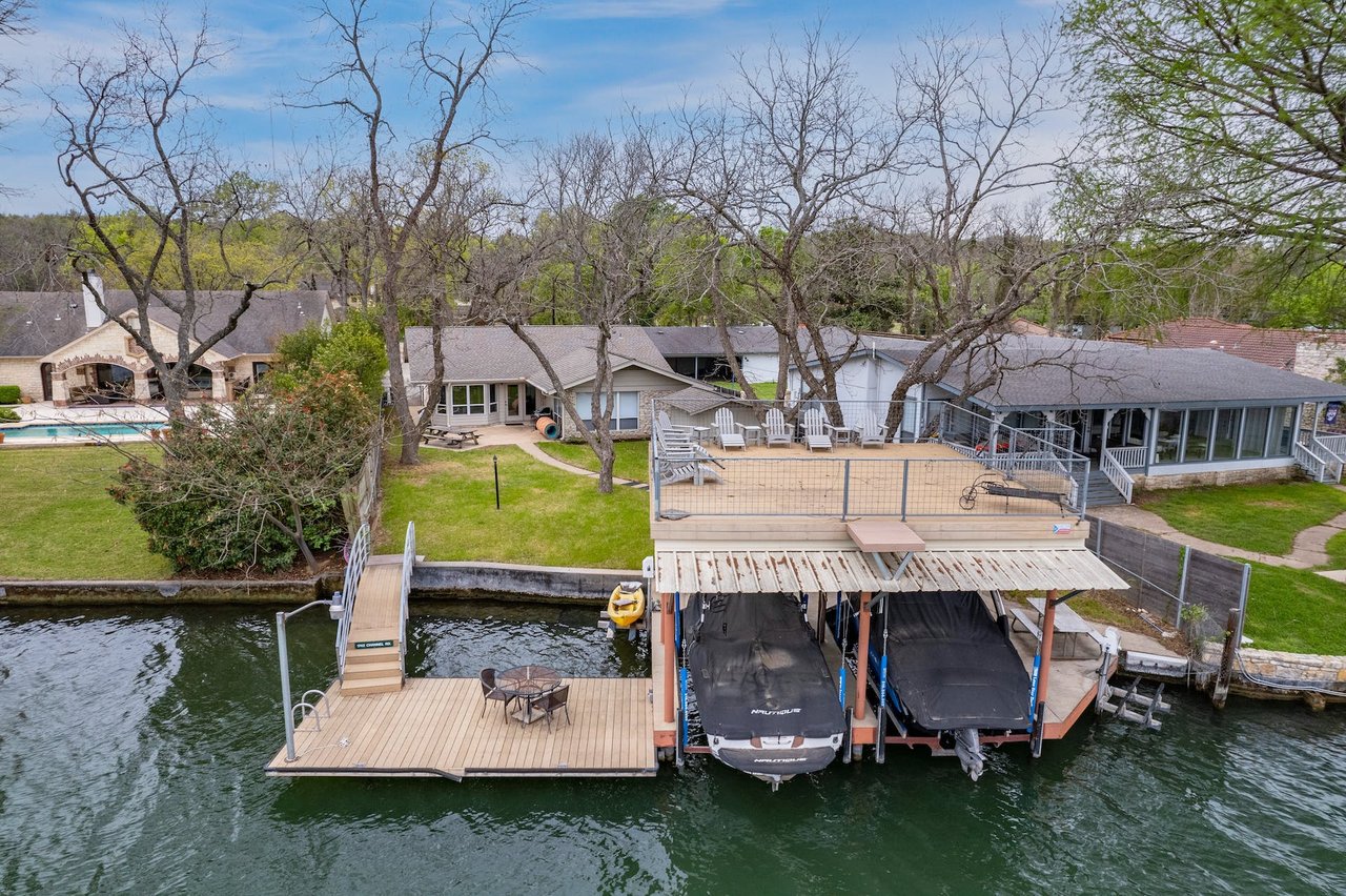 Take advantage of the property’s desirable two-slip boat dock, jet-ski lifts and a party deck for convenient water access and fun. This property is less than 2 miles from retail and restaurants of Davenport Village and less than one mile to Austin Country Club.